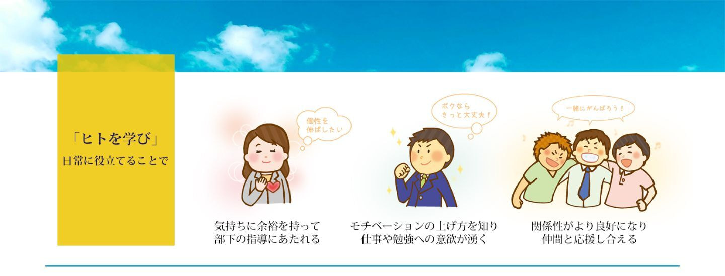 「自分や相手の可能性を感じられ,学校教育・人材育成・子育てに役立っている」というお声を多数いただき,教育者・指導者が“ヒトを学ぶこと”で,“人の成長を促進できること”に確信を持つ。